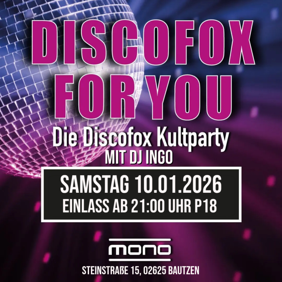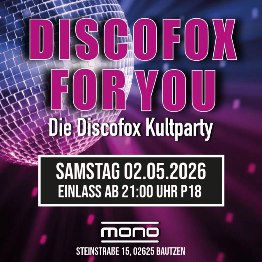 Coole Drinks und der beste Discofox von gestern bis heute - das und noch viel mehr erlebt Ihr bei dieser Party im Mono in Bautzen!